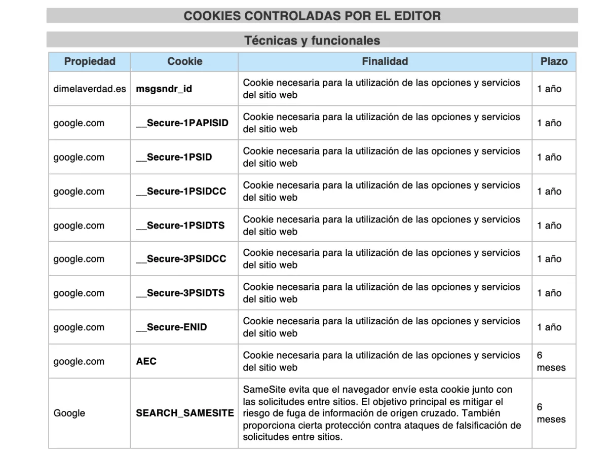 Cookies propias: son aquellas que se envían al equipo terminal del usuario desde un equipo o dominio gestionado por el propio editor y desde el que se presta el servicio solicitado por el usuario.